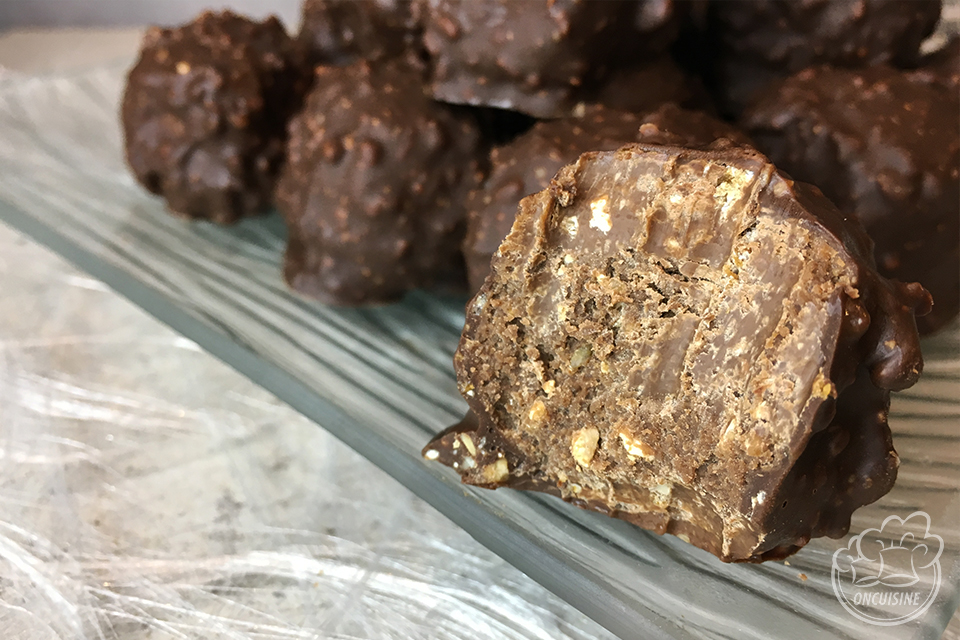 - Pour l'enrobage, vous pouvez utiliser des noisettes ou des amandes concassées à la place du pralin. Il est possible également de remplacer le chocolat au lait par du chocolat noir ou un mélange chocolat au lait/chocolat noir. Tout dépend du résultat gustatif que vous souhaitez.