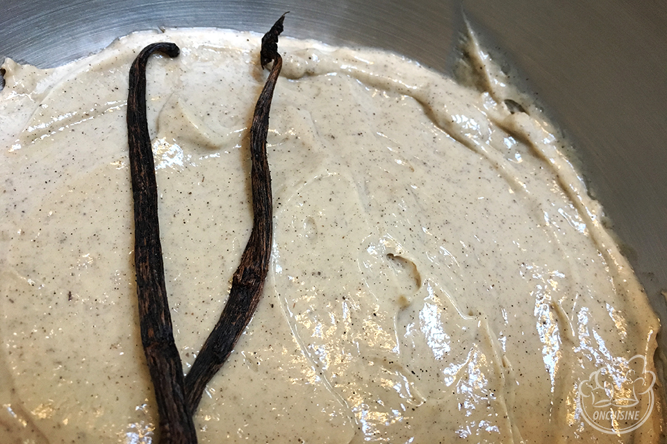 Commencez par gratter les 2 gousses de vanilles pour récupérez les graines.