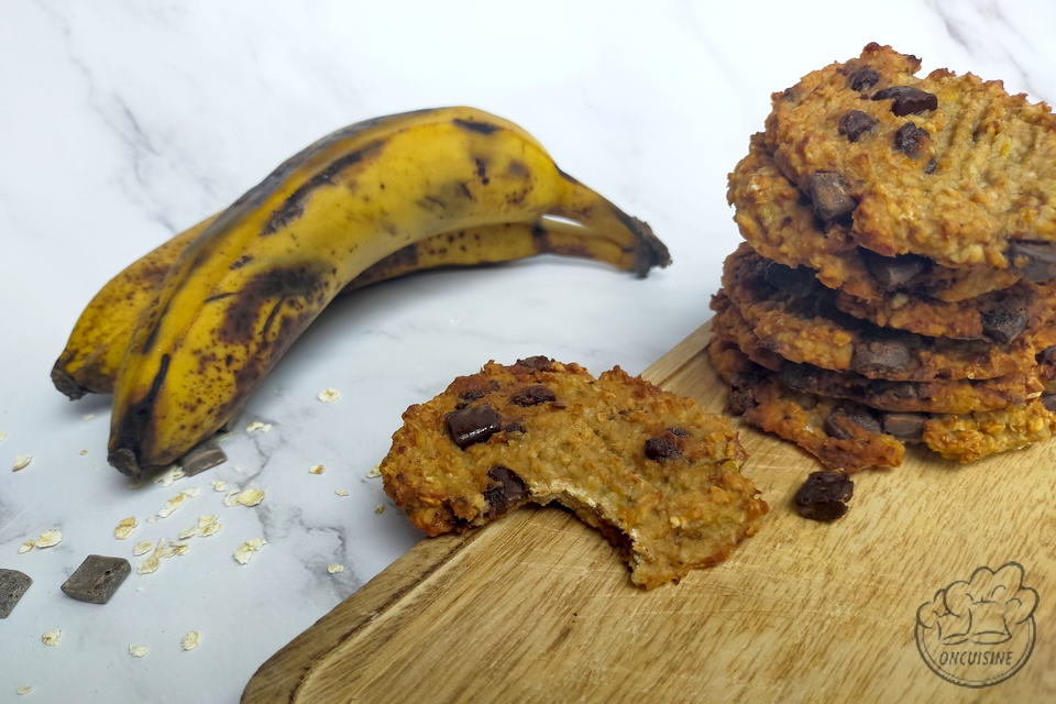 (Goudi) Je me suis une fois de plus retrouvée avec des bananes très mûres que j'allais perdre, mais j'avais envie de changer du banana bread. Alors j'ai opter pour de délicieux cookies aux flocons d'avoine, banane et pépites de chocolat !