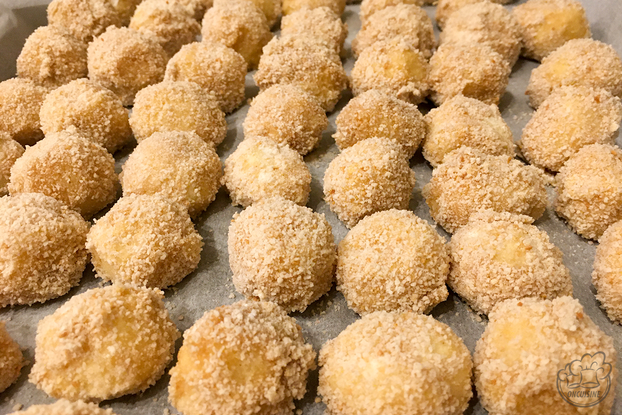 Cette recette de pommes noisettes maison est en quelque sorte un mélange de pommes noisettes et pommes duchesses : une purée avec des jaunes d'oeufs comme des pommes duchesses mais une forme et une panure de pommes noisettes.